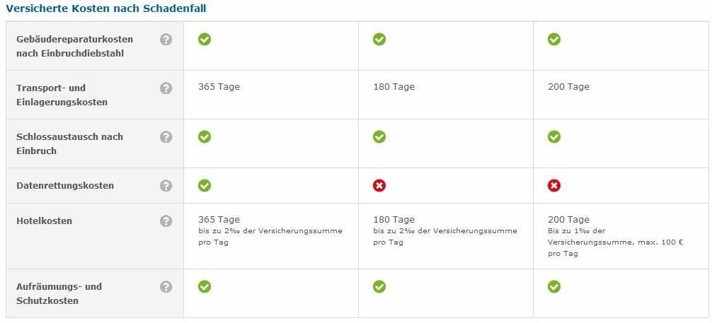 - Schlossänderungskosten, wenn Schlüssel durch einen Versicherungsfall abhandenkommen