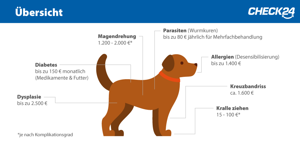 Bei Hunden treten häufig Erkrankungen auf, die vom OP-Schutz nicht vollständig abgedeckt werden, da sie mit anderen Behandlungsmethoden als einer Operation behandelt werden können.