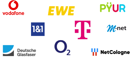 Im Internet-Tarifvergleich von CHECK24 können Sie die Tarife aller Testsieger wie Deutsche Telekom, Vodafone, Deutsche Glasfaser oder NetCologne vergleichen.