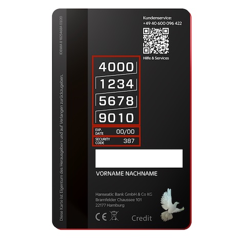 Auf der Rückseite ist zudem die Kartenprüfnummer, in engl. Security Code oder Card Verification Value, kurz CVV-Code, aufgedruckt. Bei Visa und Mastercard besteht diese Prüfziffer aus drei Zahlen. American Express (Amex) hat einen vierstelligen Code auf die Rückseite seiner Kreditkarten gedruckt.