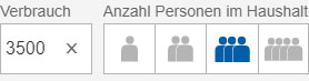 If you do not know your annual energy consumption, you can use our reference values as a guide. By selecting the number of people in your household, the corresponding estimated electricity consumption will automatically appear and you are ready to compare tariffs. In order to estimate your annual gas consumption, you can select the approximate square meters of your living space.
