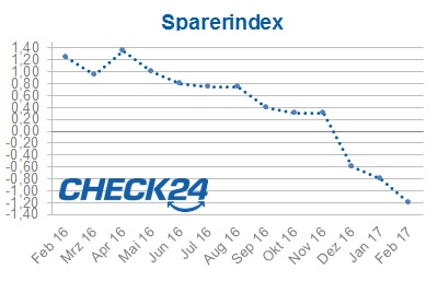 Eine Inflation von 2,2 Prozent bedeutet für ein herkömmliches unverzinstes Girokonto eine reale Rendite von -2,2 Prozent. Die schlechte Nachricht: Auch mit einem Tagesgeldkonto ließ sich im Februar keine positive Rendite erzielen, wie der Sparerindex von CHECK24 zeigt. Der Index vergleicht jeden Monat den höchsten Zinssatz im Tagesgeldvergleich von CHECK24 mit der jährlichen Inflationsrate. Auf diese Weise können Sparer ermitteln, welche Rendite sich abzüglich der Inflation mit einem über das Vergleichsportal eröffneten Tagesgeldkonto erzielen lässt. Die Consorsbank bietet Neukunden mit 1,0 Prozent Zinsen p.a. bis zu einem Anlagebetrag von 25.000 Euro das bestverzinste Tagesgeldkonto im CHECK24-Vergleich. Abzüglich der Inflation erhielten Sparer damit eine reale Rendite von -1,2 Prozent.