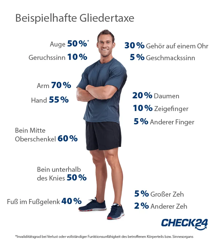 Eine private Unfallversicherung schützt Sie vor den finanziellen Folgen eines Unfalls. Sie zahlt bei bleibenden Unfallschäden eine festgelegte einmalige Summe, die sogenannte Invaliditätsleistung, aus. Die Höhe dieser einmaligen Kapitalleistung berechnet sich anhand der vereinbarten Versicherungssumme und Progression sowie dem Grad der Invalidität.