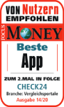 08/2019 - FOCUS-MONEY: CHECK24 wurde als „Fairster Digitaler Finanzexperte“ ausgezeichnet