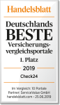 CHECK24 ist bester Dienstleister in der Kategorie „Portale Versicherungsvergleich“. Das ergab die Untersuchung „Deutschlands beste Dienstleister im Versicherungswesen 2019“ der ServiceValue GmbH im Auftrag der Tageszeitung Handelsblatt. CHECK24 sichert sich den ersten Rang vor Verivox, Comfortplan und biallo.de.